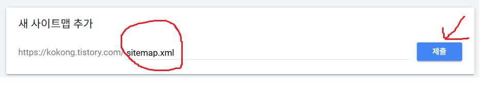 - 새 사이트맵 추가에 rss를 적고 제출 클릭
